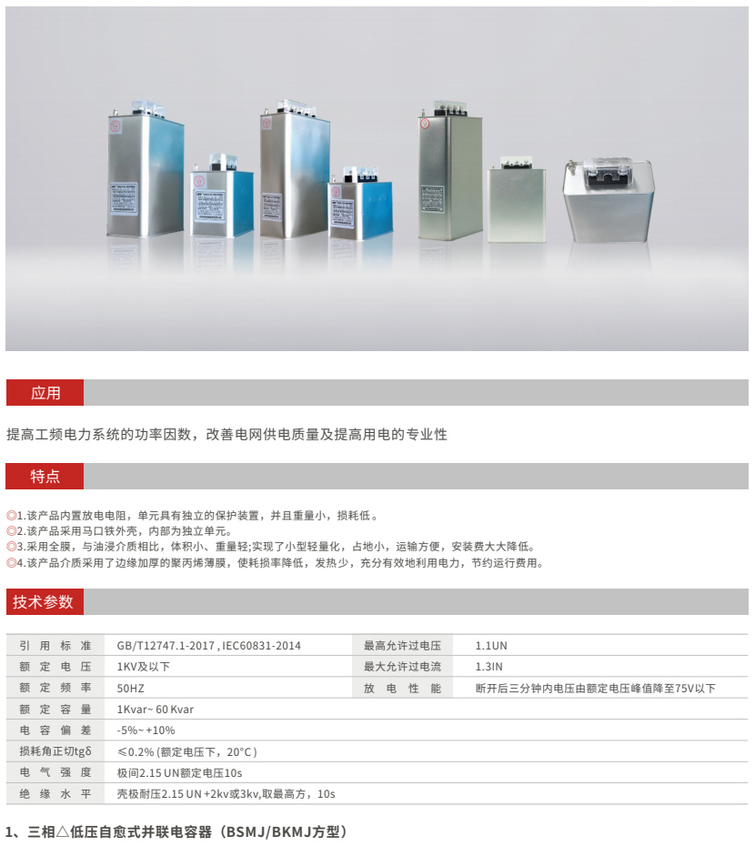 標稱(chēng)電壓1KV及以下自愈式并聯(lián)電容器
