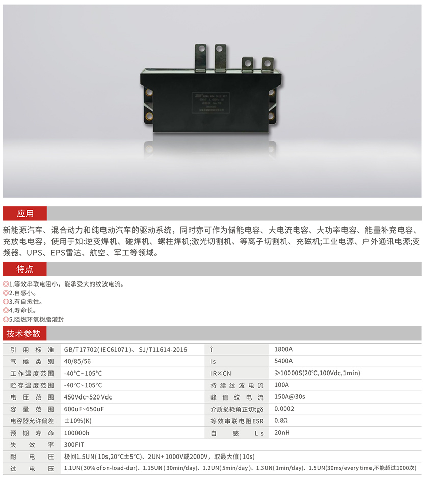 電動(dòng)汽車(chē)驅動(dòng)電機系統用金屬化薄膜電容器